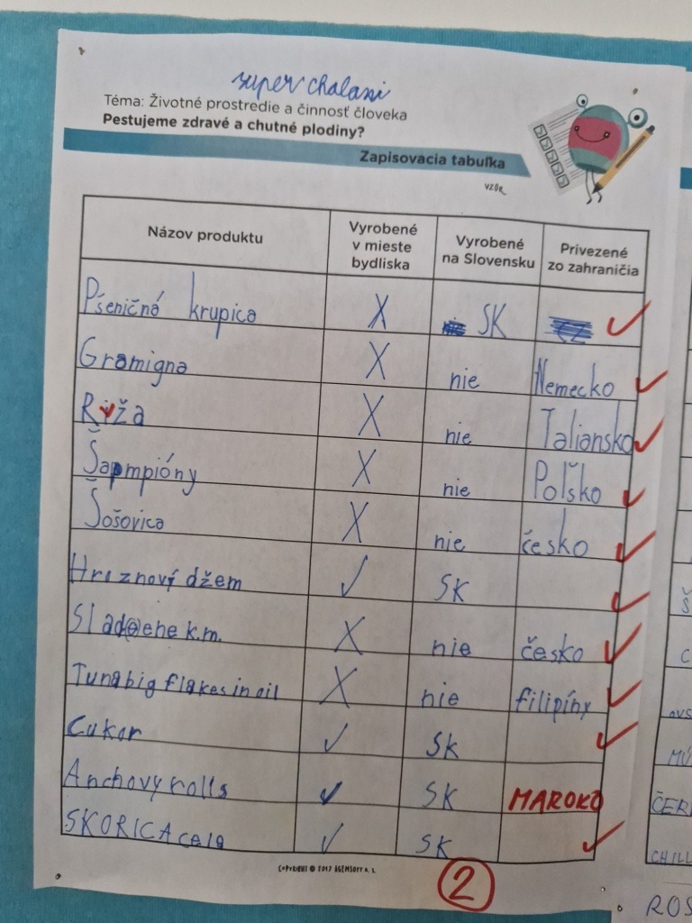 tabuľka slovenských výrobkov a výrobkov zo zahraničia